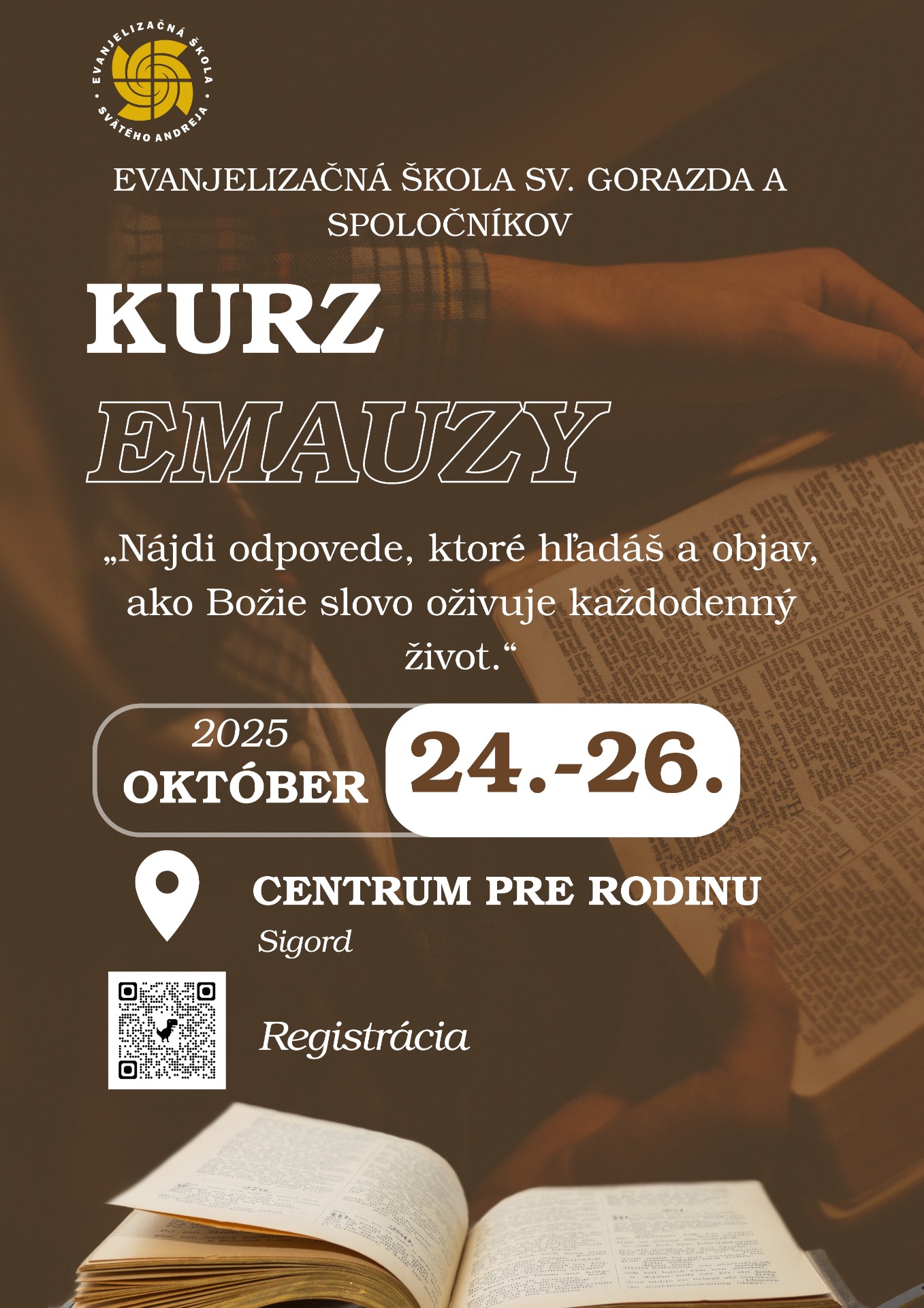 Pozývame Ťa na duchovné dobrodružstvo - kurz Emauzy, ktorý sa uskutoční 24.-26.10.2025