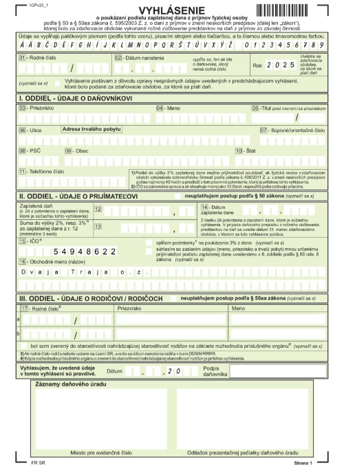 Tlačivo 2% dane