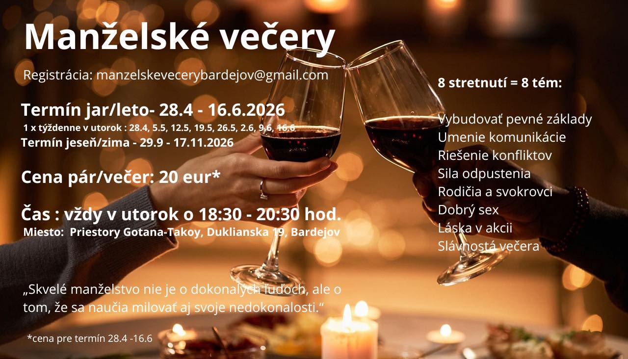 Ak máte záujem, zaregistrujte sa na: manzelskevecerybardejov@gmail.com